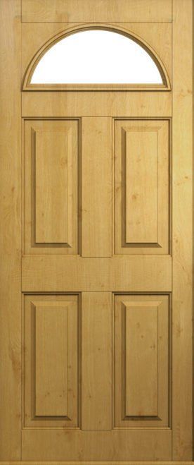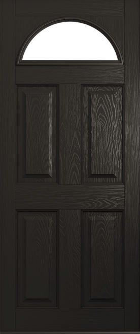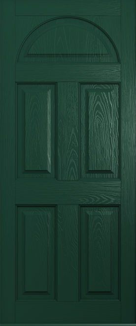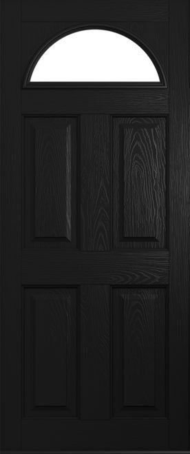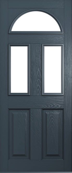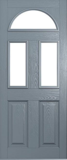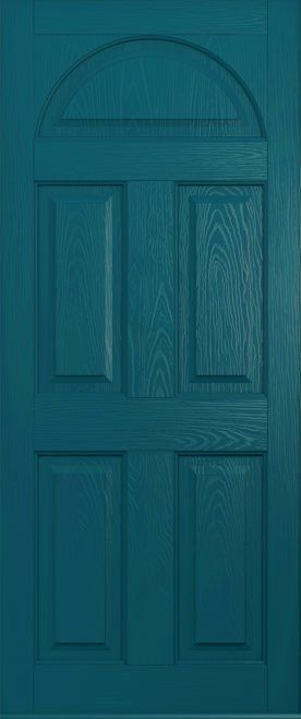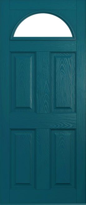 This door can be designed as a completely solid door, or with just the top fanlight glazed or even with a fully glazed design to take account of the vast array of glass options. The square or quad glass options can be manufactured in grey, black and red colours for added elegance. Our advice is to also choose a bold doorknocker for this design!
